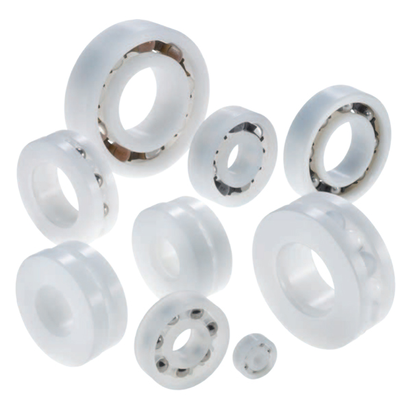 這些軸承具有耐受腐蝕和許多化學(xué)物質(zhì)的性能。 他們的重量輕且靜音運(yùn)行。 聚合物球軸承無(wú)需潤(rùn)滑劑。